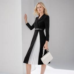 Bröllopsanmälare klänning elegant vintage fest skjortkrage te-längd stretch tyg långärmad med färgblock midi klänning