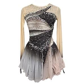 Klänningar till konståkning Dam Flickor Skridskor Klänningar Svart Lappverk Tummen Maska Elastan Elastisk Träning Professionella Tävling Skridskoplagg Håller värmen Kristall / Strass Stenar Långärmad