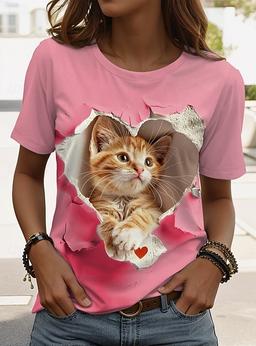 Dam T-shirt Grafisk Katt Stylish Klassisk Ledigt Kortärmad Rund hals Vanliga toppar Dagligen Helgen Mönster Vit Rodnande Rosa Blå Sommar Vår