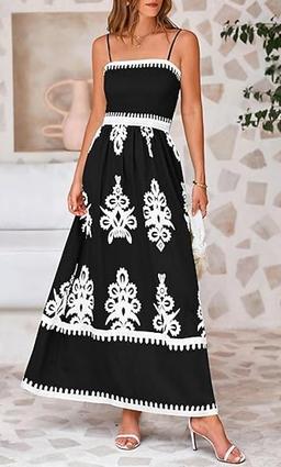 Dam Långklänning Maxiklänning Swingklänning Sommarklänning Slipklänning Elegant Helgdag Utekväll Normal Blommig Ärmlös Smala axelband Svartvit Svart Vit Blå Sommar