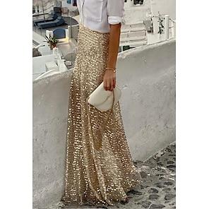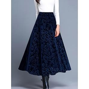 Dam Kjol A-linje Ledigt Knälång Mellanhög midja Kjolar Blommig Mönster Microelastisk Semester Gata Svart Gul Blå Orange Sommar Polyester