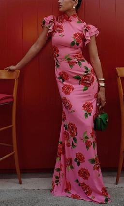 Dam Långklänning Maxiklänning Festklänning Cheongsamklänning Mode Utomhus Fest Tebjudning Normal Blomma Ärmlös Hög krage Svart Rubinrött Aprikos Sommar