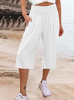 Kvinnors Bomull Linne Byxor Baggy Byxor Capri Byxor Chinos Mode Bas Knälängd Hög Midja Enfärgad Fickor Elastisk Midja Komfort Utomhus Mikro-elastisk Semester Gatubutik Daglig Aprikos Marinblå Svart
