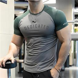 Herr Gymtröja Kompressionströja Träningsskjorta Rund hals Kort ärm Ledigt / vardag Gym Snabbtorkande Hög Stretch Svetttransporterande Lappverk Färgblock Blå Svart Het stämpling Sportkläder Polyester