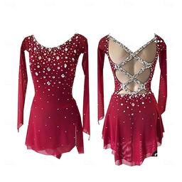 Klänningar till konståkning Dam Flickor Skridskor Klänningar Vinröd Tummen halofärgning Hög Elasisitet Professionella Tävling Skridskoplagg Håller värmen Kristall / Strass Stenar Långärmad