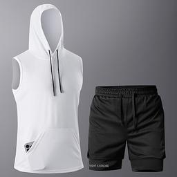 Herr Träningsoverall T-shirt och shorts till jogging Snörning Ficka Solid färg Tröja och byxor Atletisk kläduppsättning Träningsdräkter Sommar Svart Vit Gymträning Joggning Löpning Mjuk