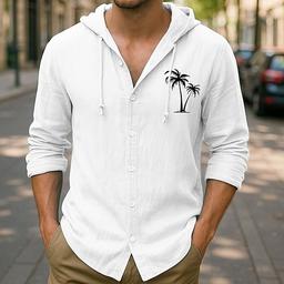 Herr Knapp upp skjorta Huvtröja Svart Vit Aprikos Grå Ljusblå Långärmad Kokosnötsträd Mönster Huva Semester Ledigt Huva Kläder Mode