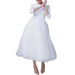 Förlovning Liten Vit Klänning Brudshow Klänningar Bröllopsklänningar A-linjeformad Båt Nacke 3/4 Längd Ärmar Ankel Längd Siden Brudklänningar Med Fickor 2025