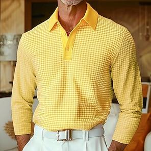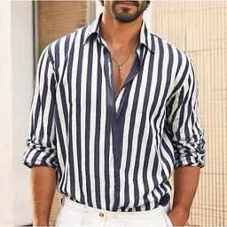 Herr Skjorta Linneskjorta Sommarskjorta Strandskjorta Linneskjorta i bomull Randiga skjortor Randig Semester Hawaiisk Gul Rubinrött Blå Grön Långärmad Nedvikt Vår & Höst Kläder Button-Down