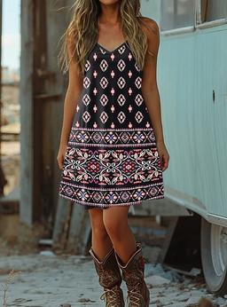 Kvinnors Boho Klänning Western Klänning Vintage Mini Klänning Sundress A-Linje Klänning Sleek Klänning Off The Shoulder Klänning Semester Avkopplande Boho Utgång Strand Regular Passform Grafik