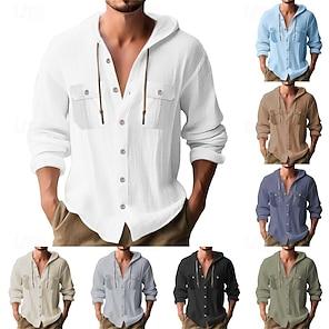 Herr Skjorta Våffelskjorta Sommarskjorta Casual skjorta Knapp upp skjorta Svart Vit Rubinrött Grön Beige Kortärmad Slät Krage Semester Dagligen Kläder Mode Ledigt Bekväm