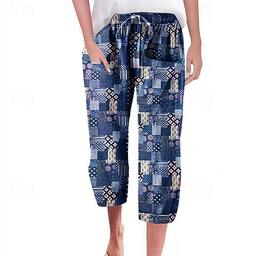 Dam Shorts i bomullslinne Linneinspirerade byxor Byxor av linne i bomull Mode Streetwear Vadlängd Naturlig Blomma Ficka Tryck Elastisk dragsko-design Bekväm Utomhus Semester Utekväll Magenta Svart