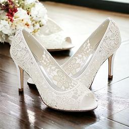 Dam bröllop Skor Maska Brudskor Spets Stilettklack Öppen tå Satäng Svart Vit Kristall