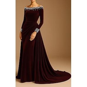 Åtsmitande Svepsläp Balklänningar Kvälls klänningar Balklänning Formell klädsel Färgblock Vit Ärmlös Axelbandslös Bröllopsgäst Festkläder Polyester med Slits