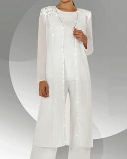 Jumpsuit byxdress 3-delad mor till bruden bröllopsgäst elegant juvelhals golvlängd chiffong lång ärm med paljetter gratis skräddarsydd storlek