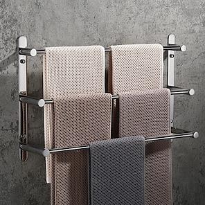 väggmonterad handdukshängare med krokar, 3-lagers handdukshylla i rostfritt stål för badrum 30cm~70cm handdukshållare handdukstork handdukshängare