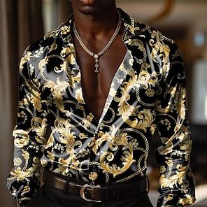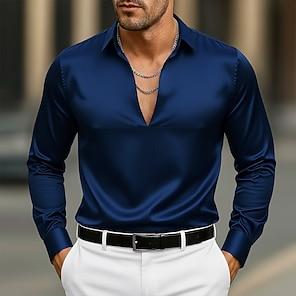 Herr Balskjorta Disco skjorta Sidenskjorta i satin Smokingskjortor Ensfärgat Bröllop Fest Svart Vit Rubinrött Blå Långärmad Nedvikt Sommar Vår Kläder Paljetter