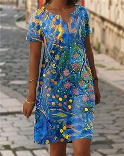 Kvinnors Mini Klänning Avslappnad Klänning T Shirt Klänning Tee Klänning Shift Klänning Sommar Klänning Elegant Stilren Formell Semester Arbete Avslappnad Linne-lik Regelbunden Passform Blommig
